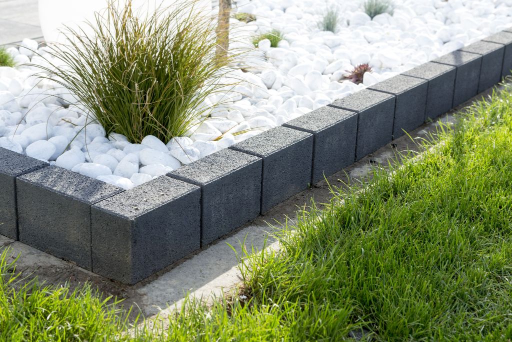 Gdy powierzchnia działki jest mocno ograniczona, zieleń możemy umieścić w betonowych donicach, takich jak Tigela. Kształtem przypomina ona prawie sześcian, a jej niewątpliwym atutem jest brak dna i pusta przestrzeń pomiędzy ściankami. Wypełnia się ją ziemią, a w niej sadzi rośliny. Z donic można tworzyć niższe i wyższe konstrukcje, co dodatkowo zwiększa możliwości aranżacyjne oraz pozwala tworzyć kaskady wypełnione roślinnością, na przykład wzdłuż biegów schodów. Donice Tigela, o czym świadczy ich kubistyczny design oraz grafitowy lub stalowy kolor, zaprojektowano właśnie z myślą o nowoczesnych aranżacjach. Gdy dysponujemy nieco większą powierzchnią, dobrym pomysłem na wzbogacenie aranżacji strefy wejściowej posesji są obrzeża i palisady. Z ich pomocą ochronimy zieleń, a także nadamy jej ramy kompozycyjne, budując z nich na przykład kwietnik. Prefabrykatem, który doskonale sprawdzi się w tej roli i znajdzie zastosowanie przy tworzeniu zielonych przestrzeni w nowoczesnych aranżacjach, jest obrzeże Treo. Cechuje je minimalizm i kolorystyka utrzymana w odcieniach szarości. Jego wyróżnikiem są też pionowe fugi, które dodają mu lekkości i dynamizmu. Ciekawą alternatywą jest palisada Hestra dostępna w kolorach: stalowym i grafitowym. Pojedynczy element posiada wymiar 10×20 cm, jednak tym, co pozwoli nam stworzyć wiele ciekawych aranżacji, są trzy różne wysokości prefabrykatu, które wynoszą 60, 80 i 100 cm. Dzięki temu z palisady Hestra można budować donice o nieregularnej wysokości boków lub o różnej wysokości, akcentując ich wagę w przestrzeni.