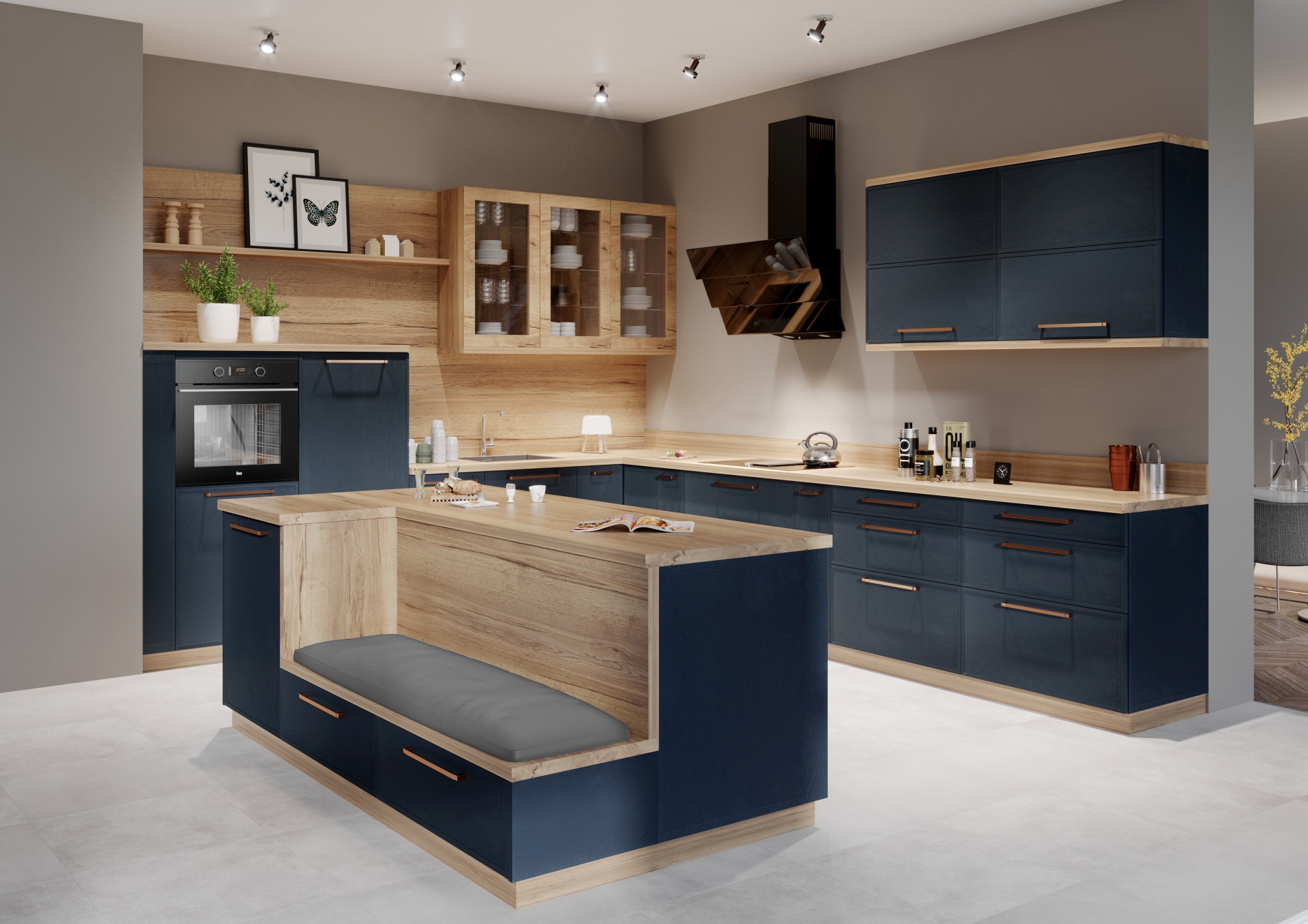 Nawet jeżeli szkło będzie przewodzić kuchennej aranżacji, z pewnością jej nie przytłoczy. To jego ogromna zaleta. Wzbogaca zabudowę meblową i zapewnia jej efekt stylistycznej świeżości, a jednocześnie nadaje lekkości i pozwala optycznie kształtować proporcje wnętrza. Fronty z przeszkleniami „odciążą” wizualnie nawet masywną bryłę mebli. Docenimy to szczególnie w przypadku systemów meblowych do wysokości sufitu.